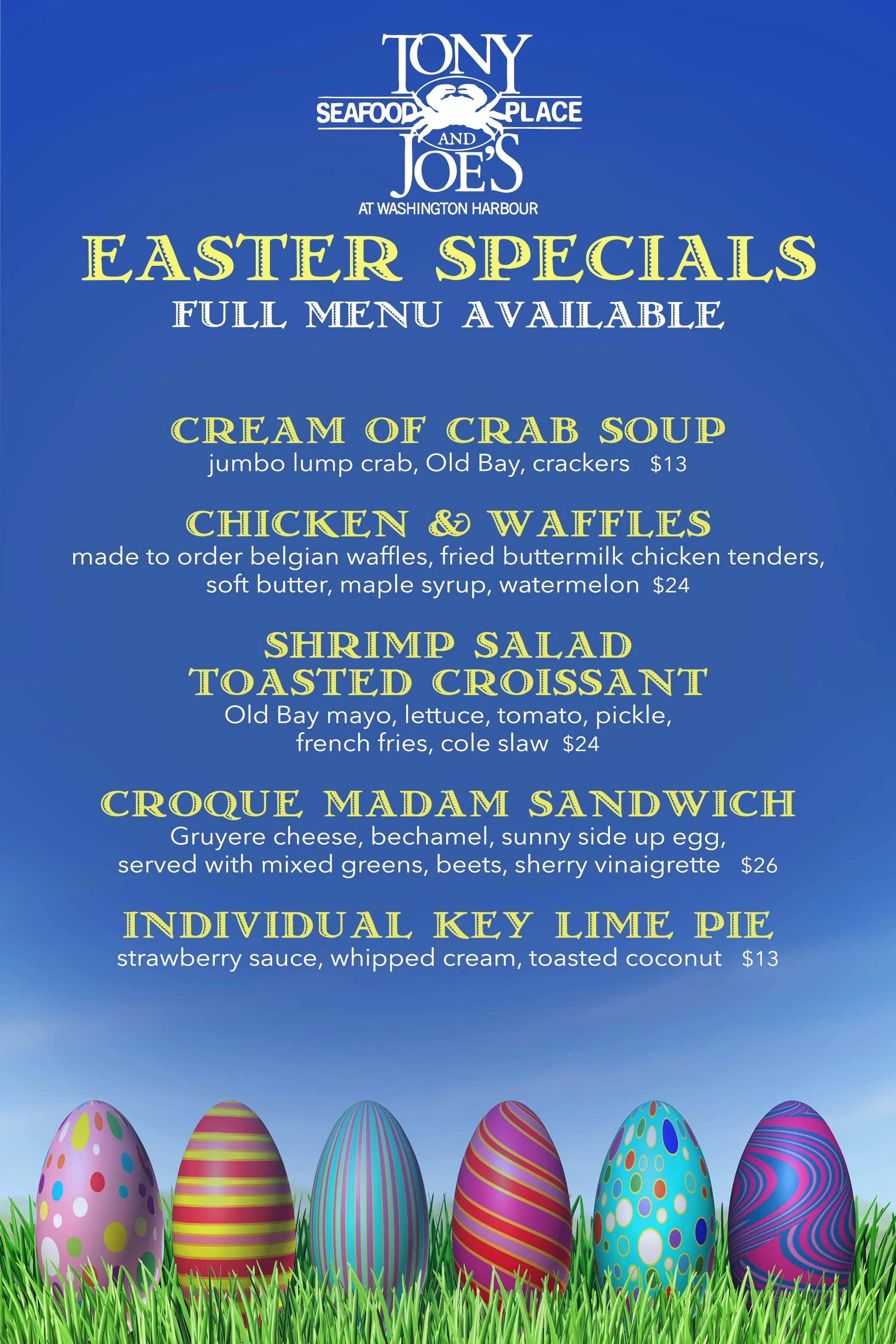 Celebrate Easter Sunday with a waterfront brunch at Tony & Joe’s Seafood Place. Alongside our full regular menu, we’re offering a selection of festive brunch specials crafted just for the occasion—perfect for a relaxed holiday meal with family and friends.